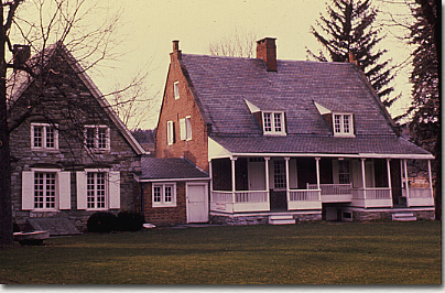Other ethnic communities established a presence on the Hudson Valley rural landscape as well. A small number of French Huguenot (Protestant) refugees found their way to Kingston in the late 1600's, and in 1677, twelve of them obtained a patent to lands along the Wallkill, which they named New Paltz. They built their permanent homes in stone and in the style of the early Dutch houses of Kingston. One of them, the gable-front Bevier-Elting House on Huguenot Street, may be the last surviving example of the type of those original stone houses. Another, the Jean Hasbrouck House, is remarkable for its extraordinary scale.