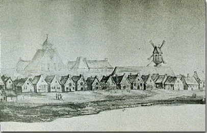 It was in this early period that Dutch architecture was introduced into the Hudson Valley, a phenomenon that occurred nowhere else on the North American continent. (There were other similar Dutch settlements in the West Indies and South America.) The forms and construction methods of the buildings that appeared were based Dutch precedents. In the compact urban settings of New Amsterdam and Fort Orange, these houses were visibly similar to the townhouses from home, though smaller in size and more economical in materials and decoration.