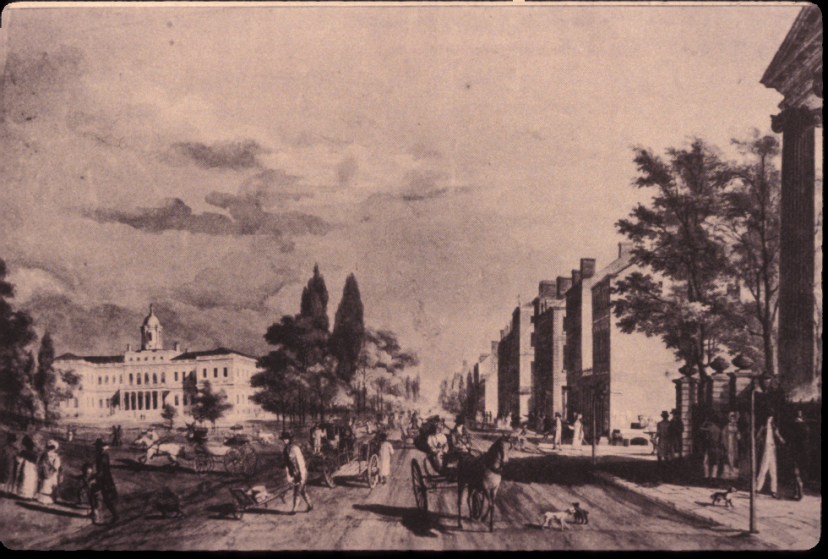 The cities of New York and Albany expanded and developed rapidly in this period and the river landings grew as well. River transportation improved dramatically with the introduction of the steamboat in 1809. Passengers and freight moved more quickly between the rural sources of foodstuffs and manufactured goods and consumers in the city. New York City was emerging as the most important port on the Atlantic seaboard. Albany, the capital city, was losing much of its old Dutch and frontier status. Lumber and iron, both extracted from the great north woods of the Adirondacks, generated prosperity. Elegant new townhouses in the Neoclassical taste were built in large numbers in both places. New York City had to be rebuilt from the ravages of the war, and it was completed with great style that was widely recognized. Architects became a legitimate profession in this era and public and residential buildings achieved a new sophistication. The transformation was so complete that by 1820 Washington Irving was lamenting that the Dutch architecture in New York City was gone.