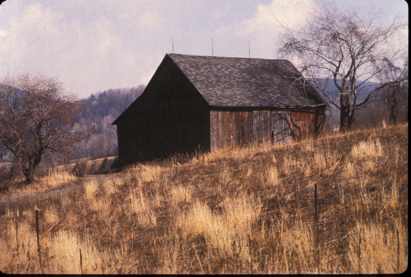 Farmsteads did not change much from the Colonial Period when barns were the principal and often the only building. The Dutch and British continued to construct barns reflecting their ethnic heritage, and they were actually called Dutch and English barns in the period. Both had developed as structures in which to dry and process wheat, which was the major market crop in the region. During the Federal Period, wheat production declined due to soil exhaustion, blights and growing price competition from farms west of the Catskills. (The opening of the Erie Canal in 1825 effectively ended the region's wheat economy as it delivered grain from the western part of the state to New York City merchants in greater quantities and at lower prices than that produced in the Hudson Valley.) The barns remained intact in form, but increased in size and were rearranged for housing milk cows and storing hay in their rafters. Wheat was replaced with butter as a commodity, and Hudson Valley agriculture shifted to feed the growing metropolis at the river's mouth.