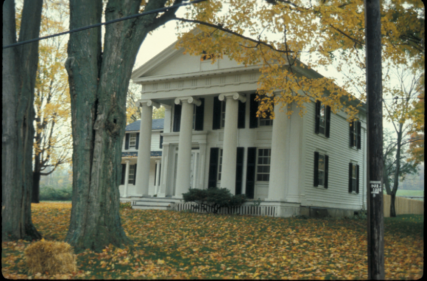 Sometime in the 1820's, the world's fascination with Rome and Neoclassicism was supplanted by an enthusiasm for Greek archeology and the rediscovery of its architecture. By this time, after the atrocities of the French Revolution and the rise of Napoleon, France no longer enjoyed a central place in the hearts of Americans. The idealism generated with the winning of American independence was also diminishing as the image of Jefferson's republic of citizen farmers had evolved into a nation oriented to commerce and capitalism. The shift in attention from Rome to Greece also reflected a shift in orientation from France back to Britain. With the exuberant nationalistic iconography growing a bit stale, it was replaced by a more stolid, apolitical reference to ancient Greek architecture. With a formal system and a conventionalized ornamental vocabulary already in place, it was a favorite of architects for public buildings. It was also applied to domestic architecture but with limited success. One or two Greek Revival style "temples" were built in just about every town in the Hudson Valley, but they were by far in a highly visible minority when compared with other architectural periods and styles (many more appeared in western New York, where communities were reaching maturity in this period). The style was more evident in the stylistic woodwork that was incorporated in more common houses, such as wide fascias on cornices and corner boards and porch posts designed with capitals. This taste lasted no more than two decades when it was condemned as unnatural in the environment and un-American by Romantic architects and designers who took the region by storm at mid-century.